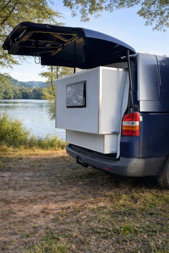 Eine Camping Box ist ein portables Modul, das ein normales Van- oder Nutzfahrzeug in wenigen Minuten in einen gemütlichen Schlaf- und Wohnraum verwandelt.